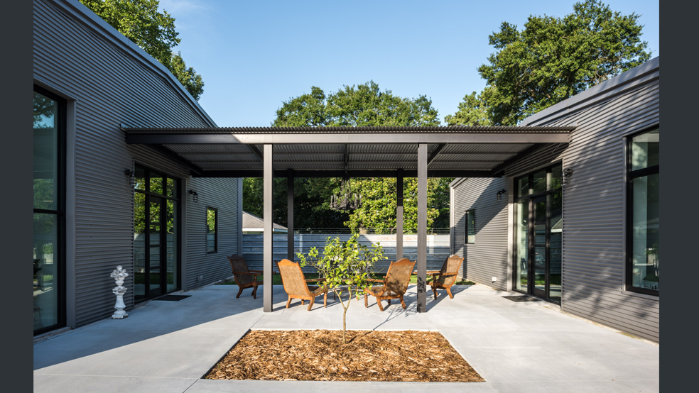 This residential project, completed with CONTENT architecture, encompasses the renovation of two aging metal warehouses located on an acre just north of the 610 loop. The larger warehouse, previously an auto mechanic’s shop, measures 6000 square feet and contains a residence, art studio, and garage.