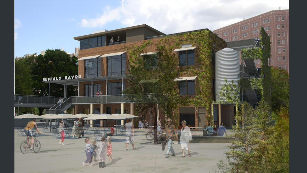 The current plan for revitalization, led by Buffalo Bayou Partnership and Houston First Corporation, calls for an outdoor plaza, refreshment and rental facilities for the runners, canoers, kayakers, and bicyclists that enjoy the Bayou’s trails. The 11,000 square foot building will also house office and event space, including a green roof terrace, for private events.