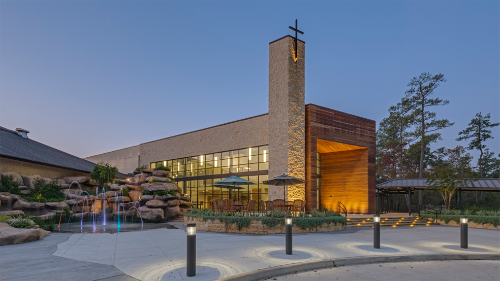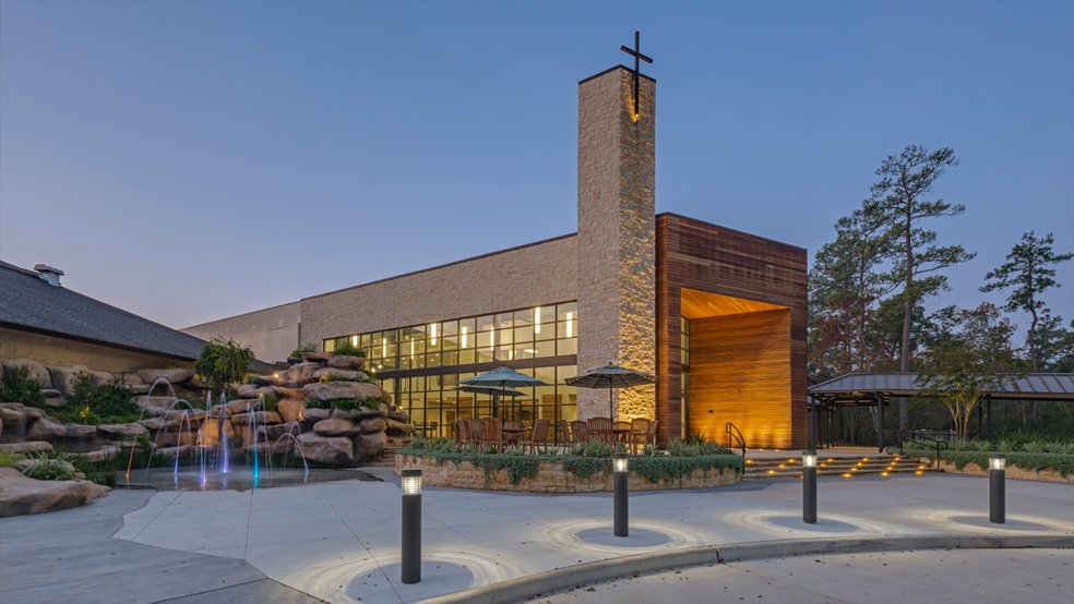 The Woodlands First Baptist Church, exterior.