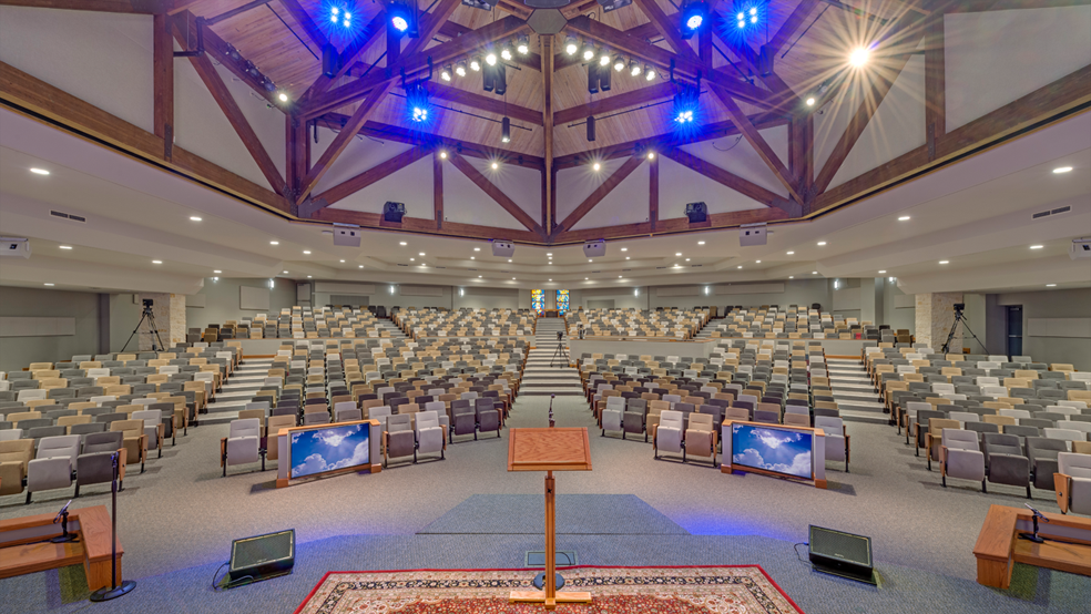The Woodlands First Baptist Church 1200 seat sanctuary with new LED downlights.