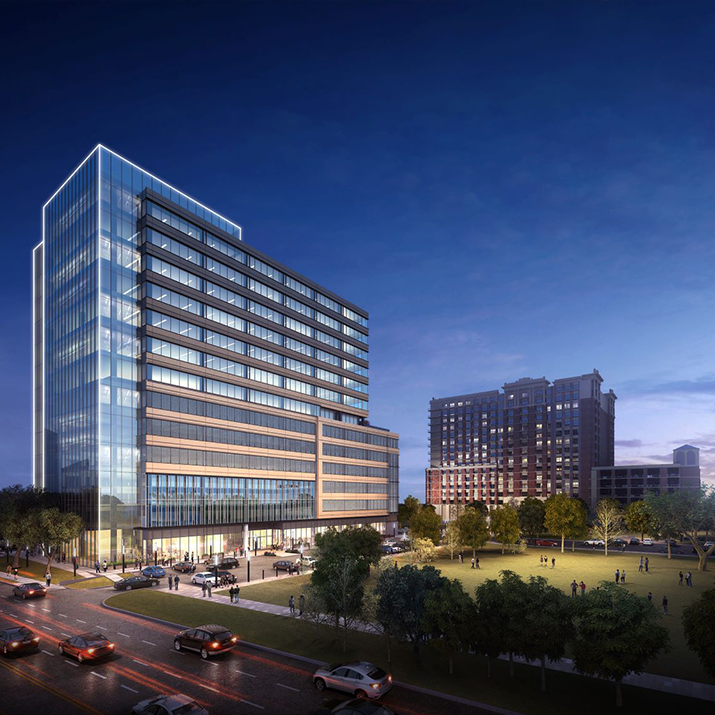Pedestrian and facade lighting will highlight pathways and architecture, parking areas will be well lit for safety and security, while string lights and uplit mature oak trees will create inviting landscaped gathering areas. Some of the specialty lighting aspects include the 130' tall historic Imperial Silos, which will be washed in corchanging lights and the original smokestacks, which will but uplit and provide recognizable beacons for miles around. Additionally, specialty fixtures will project color and pattern onto the ground at select destination points, including the entrance to the Children's Museum of Houston.
